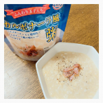 テーブルランドさんの 「レンジ対応 味付粥シリーズ」を食べてみました♪ . . レンジでそのまま温められるため、忙しいときでも簡単に食べられるインスタントのお粥です🥣 . 嬉しいことに、封を切らずに袋を立てたまま電子レンジでチンするだけ!! . . そしてお味は ♡豚骨ラーメン風粥 こだわりのポークエキスと香味野菜で、コクのある豚骨スープに! ♡カルボナーラ風粥 チーズと卵のコクが引き立つ、お粥に仕上げました。黒こしょうがアクセント! ♡ミートソース風粥 ビーフの旨味とトマトの酸味が広がる、コク深い味わい! と、ちょっとびっくりするようなラインナップ😂 . . 食べた感想は、どれも美味しい!! 豚骨ラーメンは、豚骨を感じます!でもあっさり食べられる! カルボナーラは、クリーミィなたまご粥な感じ! 私はカルボナーラが1番好きかも〜🎶 ミートソースはハヤシライス?みたいな味かな〜 主人はミートソースが1番好みだそうです☺️ . . そして嬉しいことに、どれも高カロリーっぽいのに、なんと低カロリー! . . 「小腹が空いた!」「遅い時間に夜食が食べたい!」 てな時にピッタリですね🌼 . . . . . . . . #テーブルランド #レンジ対応味付粥 #丸善食品工業 #豚骨ラーメン風粥 #カルボナーラ風粥 #ミートソース風粥 #おかゆ #レトルト粥 #monipla #tableland_fan 2022/08/21