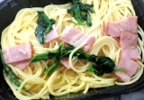 深いコクのある練りごまに、豆板醤と中国山椒(花椒)の辛みをほどよくきかせた特製ごまダレまろやかなのにピリッとした味わいは、平打ち麺や、彩りのよい3種野菜によく合います具材:キャベツ、ほうれん草、赤ピーマン、きくらげ1食 365kcal 野菜 50g(仕込み時)3種野菜を中心に、スクランブルエッ… 2013/03/05