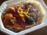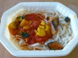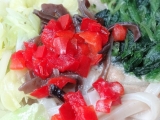 【テーブルマーク】さんの春の新商品 『うどんDELI』2種類を食べてみました 『うどんDELI』完熟トマト仕立て1食 306kcal 野菜 40g(仕込み時) 5種の野菜入り(トマトピューレーづけ、栗かぼちゃ、揚げなす、黄ピーマン、たまねぎ)で、 ダイストマトの入ったトマトピューレーづけと相… 2013/03/29