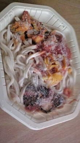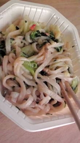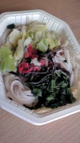 今日のひとりランチは うどんDELI3種野菜入り白ごま坦々仕立て ですこちらも袋に切れ込みを入れて、外袋のままレンジでチン よく混ぜて、いただきます 2013/03/29