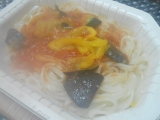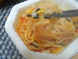 2013年春の新商品「うどんDELI」を、テーブルマーク株式会社さんより チャンプル仕立てと完熟トマト仕立ての2種類です まずは、完熟トマト仕立てから 外袋のまま加熱しますが、切り込み線があるので、3センチ程ハサミで切ります 加熱時間は600Wで5分半… 2013/03/23