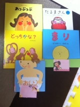 月に2度くらい、図書館から絵本を借りてきてます今回借りたのはこちらあっぷっぷだるまさんがまりおしりどっちかな特に『だるまさんが』が気に入った様子でだるまさんを指差して見てましたどっちかなも言葉の意味がわかってきたら楽しいかも 2013/04/03