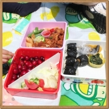 先週の土曜は幼稚園の親子遠足でした 朝からお弁当の支度で忙しかったです 夜に仕込んだから揚げあげて、おにぎり作って(おにぎり三角に結べない女です) 豪華に見えるようにお弁当に収めて 持って行く過程でかなり寄ってしまいましたが、まあこんな感じでした からあげが思いの他柔らか… 2013/06/09