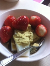 久々に食べましたくずもち大好ききな粉と黒蜜をたっぷりかけていちごをトッピングうん!美味しいいちごの酸味がまたいいねkznは少し食べて悟ったそうな2人分だけど私がほとんど食べちゃいます 2013/05/05