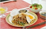 24日(月)の昼ごはんです久し振りに焼きそばが食べたくなったので作ってみたよ 4品目サラダ(サニーレタス、きゅうり、プチトマト、大葉) わかめスープ パイナップル 茄子とこんにゃくの生姜煮(冷製) スパムとたっぷり野菜のおかか焼きそば ← レシピへGO! 焼きそば麺、スパム、玉ねぎ… 2013/06/24