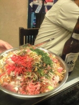 浅草のお好み焼きやさんに行ってきました ここのもんじゃは!! でかい!! その大きさは半端じゃないよ ヘラはでっかいヘラだからい 隣のビール瓶と比較しちゃってくださーぃ ヘラが大きすぎて 口に直接は運べません あーおいしかった … 2013/08/23