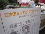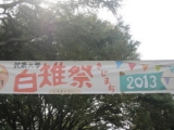 連休2日目、朝から 武蔵大学「白雉祭」に参加 学生ではありませんが、 江古田ミツバチプロジェクトとして 毎年出店しているので、今年も参加しました 学生さんが出店する目の前で 私たち江古田ミツバチプロジェクトもがんばりました ハチミツ名品販売を行う横で… 2013/11/03
