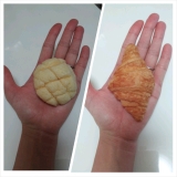 テーブルマークさんのベーカーズセレクト【クロワッサン】フランス産発酵バターを24層に折りこんであるそぉです【メロンパン】そとゎカリカリ、中ゎふゎふゎだそぉですこちら、冷凍のパンなんですサイズゎこの位手のひらにのせると小腹が空いて少し食べたい時も、沢山食べたい時も、クロワッサンとメロンパン両方食べ… 2014/03/09