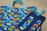 娘から届いた布で おちびの入園グッズ完成させました手提げバッグと上靴入れにコップ入れ タオルハンカチにループ付け車や工具が大好きなおちびが選んだ布男の子カラーのブルーばかりキルティングは50cm手提げバッグのサイズが40cmx42cmだったので 上靴入れ用の布地がピンチおちびがせっかく選んだ生地なの… 2014/03/20
