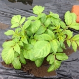 ジャガイモが発芽したと思ったら 昨日いったら随分大きくなってましたただ雨だったので、傷が入りそうと思い芽かきは次回ダコニールも一緒に撒 2014/03/30