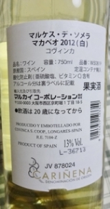 赤白選りすぐり10本セット 5880円 (送料無料) 楽天はこちら 購入店 タカムラ ワインハウス こちら 購入時のブログ記事は こちら10本セットのラスト2本ですマルケスデソメラマカベオ 2012 スペイン産 ミザンタルブランコ 2012 スペイン産 普通に飲みやすかった… 2014/04/14