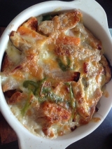 今日の昼食は前日から楽しみにてしておりましたよパングラタンですヾ(@°▽°@)ノ旦那のお弁当に入れたビーフンの具を少し残しておいて…冷蔵庫の中で硬くなった食パンを使って作りましたまず、牛乳150g、薄力粉30g、コンソメ1個を鍋で熱して混ぜてとろとろにしてクリームソースを作って…硬くなった食パンをち… 2014/05/22