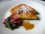 バニラの香りがとてもいいフレンチトースト メープル入りのシロップをかけて、あまいデザート やわらかいパンでしっとり こちらのフレンチトーストは冷凍食品で有名なテーブルマークの テーブルマークと言えば、冷凍パンも美味しい なのでフレンチトーストのパンにもこだわりあり 桃の天然水は数時間… 2014/06/16