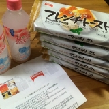 さて、最後のお試しをwwモニプラさんより、「テーブルマーク フレンチトースト」をお試しさせていただきました!ででん!っと5パックも( ´艸`)さらにおまけで、桃の天然水まで入ってました♡凍らせてフローズンにして食べても美味しいようですよ((´∀`))さて、こちらのフレンチトースト、冷凍品です… 2014/06/14