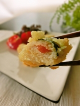 TableMarkさんのれんこんはさみ揚げを使ってちょこっと一手間プラスの小腹を満たすプチ丼作ってみましたぁ600Wで40秒(1個の場合)たったこれだけ時間をかけてられない主婦のお昼にピッタリさてさて 気になる衣のサックリ感と本当にエビが丸ごと1匹入っているのか(→ちょっと疑ってる)なので切って… 2014/07/03