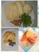 モニプラ様、テーブルマーク様よりいただきました冷凍パン4種とおまけの桃天早速いただきましたトースターでチンするだけで簡単に美味しいパンの出来上がりです フレンチトーストは、しっとり感半端ないです!なんと、シロップも付いています クロワッサンなんですが・・・ 焦げやすいのでアルミホイ… 2014/07/24