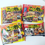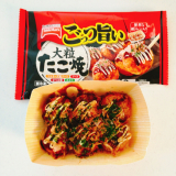 中はふんわり、外はしっかり焼き上げたまんまるな本格たこ焼に大粒のたこがしっかり。充実した添付品も魅力の一食完結型商品です。