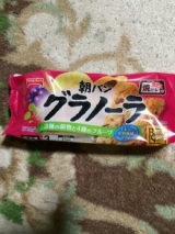 テーブルマークさんから頂いた冷凍パン、朝パングラノーラを 朝食で頂きました 袋からとりだして、トースターで23分 朝の忙しいときでもお手軽に食べられます(‐^▽^‐) 焼くとあまいいい香りがました≧(´▽`)≦ パン自体はあんまり甘くないのですが、穀物とフルーツが 入っている… 2014/09/19