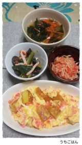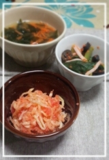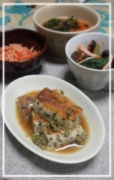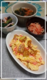 本日の献立*生麩の卵とじ*切干大根の明太子和え*つゆむらさきのサラダ*味噌汁寒くなりしたね暖房器具出しはりました?自分家はまだ頑張ってる夜は毛布に包まって真空パックの生麩を開けてしあったんで使わないと高野豆腐の代わりに両面をいい感じに焦げ目を付けて香ばしくしてから白出汁醤油とみじん切りの紅生姜を入れ… 2014/11/04