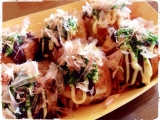 テーブルマークのごっつ旨い大粒たこ焼に、千切りの大葉とキムチをトッピングしてみたらウマっ これはいいお酒のアテになるなぁと思って、今度義父と主人に作ってあげよっと 我が家にもたこ焼き器はあるんだけど、それで作るのより、【大粒】というだけあって確かにこちらの方が大きくて、口いっぱいに頬張る感じ… 2015/01/13