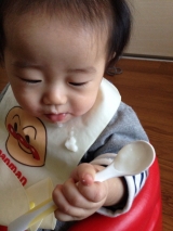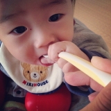 次男 11月22日で六ヶ月♡なので離乳食スタート!10倍粥スプーン1杯から早く食べたいな♪ちょっと前から私達が食べてたらお口をもぐもぐ!食べるのに興味ありそう!初めてのひとくち目はお兄ちゃんが食べさせてくれたょ♡うめっ離さないよー(笑)それから毎日少しづつ増やしてます♪スプーン離さないよ!まだちょ… 2014/11/27