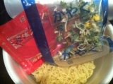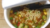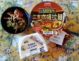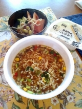 日曜日の昼下がり ジムから帰って、何か腹に入れないと、後でガックリきちゃうから、 たしかテーブルマークさんのが おおっ、あるじゃない♪ 広東カリーラーメンと、栄養バランスを考えてちょっぴりサラダと、 カレーが辛かったときの保険で、こちらもテーブルマークさんのご飯です… 2015/02/01