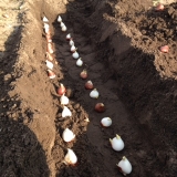 追加の150球ですうえきったどーーっ!!!割と小柄な球根だったので、結構密着して植えましたこの画像のところいっぱいにチューリップが約400球植わってます第1段がやっと芽がでましたあと2日で今年も終わり 2014/12/30