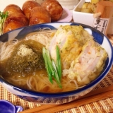 ほんの一瞬だけど 雪がチラついて喜ぶ子ども達縮こまる私こんな日は温かメニューでホッコリしなきゃ夏の残り物素麺で煮麺ドドンと乗っけたのはテーブルマークさんのれんこんはさみ揚げエビ1尾入り気分は海老天豪華版シャキッとプリッとお上品な味なので出汁も薄めに仕上げて海鮮の味と磯辺風味を楽しみながら食べま… 2015/02/09
