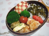 チリトリならぬトリチリ弁当正しくは、鶏のチリソース炒め弁当です鶏胸肉を炒めて、塩胡椒とスイートチリソースで味付け時短とパサつきなく食べるために鶏肉は薄切りだし巻き卵れんこんはさみ揚げ(テー 2015/02/19
