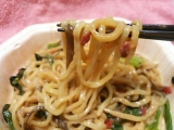 今日のランチテーブルマーク様の汁なし担々麺トレーがお皿代わりになるから、便利担々麺のぴりっとした辛さと、胡麻の風味がくせになりそう麺は冷凍してたとは思えないくらい、もちもち美味しかったです!!ごちそうさまでした(^^)b 2015/02/12