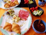 2015-3-22 朝ごはん 冷凍クロワッサンサラダ(葉っぱカリフラワークラッシュアーモンド)ポテサラベーコンフルーツ(苺キウイ)シナモンティー テーブルマーク様のファンサイトオブザイヤー受賞イベントモニター 投稿期限は過ぎていますが … 2015/03/24