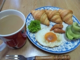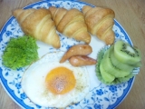 先日のテーブルマークさんから頂いた冷凍食品の中から、クロワッサンを食べてみました 冷凍なので、予熱したオーブントースターでホイルに包んで45分焼きます 焼いてる間に、目玉焼きとウインナーを焼いて、キウイーを盛り付けました ワンプレートの出来上がりです … 2015/02/20