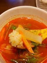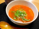 昨日も残業深夜帰宅のだんなさんなのでスープしました(^^)かなり辛めのキムチチゲ中の具は、鶏肉、大根、人参、玉ねぎ、水菜、自家製キャベツのキムチもいれてます味付けはウエイパーにキムチの素、豆板醤、醤油、胡麻油最近、太り気味だから夜ごはんは米ぬいてたけど入れちゃった!汗かきながら食べ、なかなか… 2015/01/27
