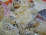 こんばんはこの前食べたセブンイレブンのパスタセブンイレブン「クラムチャウダーのスープパスタ」445円(税込480円)クリーム系が基本好きだからクラムチャウダーは大好きあさりがいっぱい大きなジャガイモもごろっと入ってる他にもブロッコリーやベーコン、玉ねぎ、人参と具がたっぷりスープにあさりの旨味が… 2015/02/15