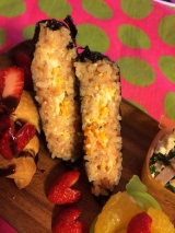 おはです今朝のリクエスト聞き忘れてしまい、、オムライス風なおにぎらずケチャップライスの間にマヨ卵を挟んで焼きたてクロワッサン添えてこのクロワッサン、、実は冷凍テーブルマークさんから届いたのー冷凍庫いっぱいで嬉しくなっちゃった(笑)このクロワッサン、そのままトースターで焼くだけおチビらが起きる1時間前… 2015/03/27