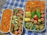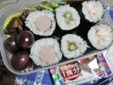 8月30日(日) の学校祭登校用弁当 ありあわせ具材の海苔巻き 左から、魚ソ生ハム&オクラマヨカニカマ 串枝豆 キュウリ漬け 巨峰 『栄養ぎゅっと1食分』 朝食用 8月31日(月) の自宅昼食用 (私は 学校祭に お出かけ ) 焼きたらこご飯 た… 2015/09/02