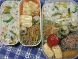 海老フライ丼 つぼ漬け 春巻き 自家製冷食朝、揚げました ジャガイモと人参のキンピラ 自家製冷食自然解凍 スナップエンドウの胡麻和え チーちく 市販品 ふっくらオムレツ 主な原材料がすべて国産の 安心していただけるオムレツ 中の具に 4種(玉葱人参ほうれん草インゲ… 2015/05/06