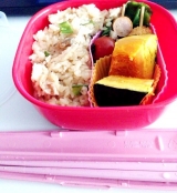 テーブルマークの冷凍食品でお弁当づくり!今回は何にしようかな♡選ぶのも楽しいです\(^o^)/ピーマンの肉詰めがメインですあまからたれがしっかり絡んでます唐揚げウインナー串お弁当に嬉しい定番の2品が一気に味わえますあさりと筍ごはん前回も入れて美味しいとカレが言ってました!今回もパパッと簡単… 2015/04/15