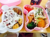 新学期が始まって、今まで、給食があった次男もお弁当ーっ(。_。)おまけに、冷食は、一品までというお告げ~_~;今まで、冷食に、頼ってたのにーっで、この一週間は、冷食なしで、頑張りましたょ❤️なぜか、お昼になると、娘ちゃんからお弁当の写真が送られて来るのよね毎日私が作ってるんですけどその何枚かさ… 2015/04/15