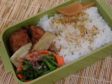 青ネギ入り卵焼き エリンギバター スナップエンドウ トマト オクラ ◎うずら串 ◎ピーマンの肉詰め +おにぎり うずら串とピーマンの肉詰めは、 テーブルマークさんの商品を使いました こちらの7品をいただきました 常備菜作りや、自家製冷凍食品作りをいくら頑張っても、 揚げ物… 2015/04/14