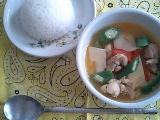 久しぶりにタイで買ってきた調味料で作ってみた記事はこちらレッドカレーパウダーと書いてある他のカレーペーストは激辛だもんなー大丈夫かな〜鶏肉を炒めてレッドカレーパウダー小さじ2杯タケノコ、オクラ、パプリカを入れて彩りきれいスープを一口お、いしー 前作った時はそうでもなかったんだけど、い… 2015/03/20
