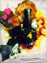 今日はプルコギに、海苔巻きおにぎり、若鶏唐揚げ⇦テーブルマークさんの冷食自然解凍してたべれるのでそのままポンといれるだけ、らくちーん!!わたしは残りを今日の昼に食べさせてもらいます感想はまた追記するね!!!お次にピーマン肉詰め旦那弁とうご飯の上にスクランブル乗せてこちらの甘辛タレの肉詰めオンタレ… 2015/04/17