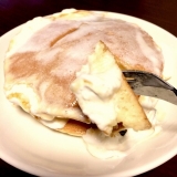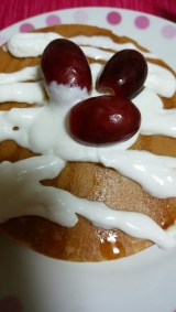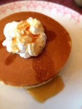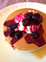 ∥´ω`)ノ こんちわん♪これは月曜日パパちゃんがお家に居た時に朝ごはんに食べたホットケーキ(≧∪≦) ふわふわのホットケーキにメイプルシロップとホイップクリームそれからブルーベリーソースをかけて♫♬うんまーーーーいヾ(′ I `)ノ+ これねーこの間送ってもらったテーブルマーク… 2015/06/27
