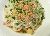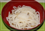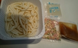 テーブルマークさんのうどん2品目 稲庭風うどん3食入り1食297kcal600w3分30秒 今回は、この前に貰ったキッコーマン「うちのごはん」を一緒に使用♪ 「もやしのねぎ味噌炒め」の素でうどんはチンして、冷水で冷やし盛り付ける挽肉を素と炒め、うどんの上にかけて完成(´`)うどんは細めでコシが… 2015/07/22