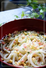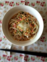 今日は一日中雨で、蒸し暑い一日でした こう毎日蒸し暑いと食欲も落ちたりするのですが、そんな時にでもつるつると食べやすい麺類 冷蔵庫で冷たく冷やした作り置きの夏野菜たっぷりラタトゥイユを、レンジでチンして冷水でしめた冷凍うどんにたっぷりとトッピングしていただきます(^^) テーブルマー… 2015/07/22