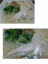 テーブルマークさんのスープが旨い鶏そば鶏白湯仕込み(1人前)お試しさせていただきました作り方は、簡単鍋にお湯を沸かして、本品を入れて2分煮込めばできあがり具だくさんなのが、うれしいですね鶏チャーシュー、メンマ、ほうれん草、九条ねぎ野菜もメンマも入っているのは、魅力的ですねこれだけ具だくさんだと別… 2015/10/29