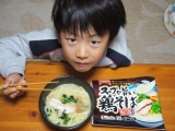 待ちに待ったテーブルマークの新商品が届きました 1品目 朝から麺類OKなゆう君が早速試食 「うん、おいしい! この味もありかな」って 白湯味は初体験だったけど、気に入ったようです 23品目 こちらを試してみることに ランチ用にみそ汁をつけてみました ゆう君は… 2015/10/29