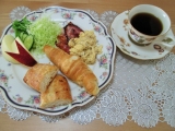 前記事の美味しい珈琲と共に、美味しいパンでの朝食 (^^♪ 前からこのブログをご覧いただいてる方には、お馴染みとなってきたテーブルマーク様の冷凍パン 今回いただいたのは、この秋新商品の「大人の朝食 デニッシュブレッドベーコン&チーズ」 具材に角切りベーコン、ナチュラルチーズ、プロセスチーズを… 2015/11/03