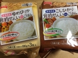 テーブルマークのパックごはん、食べてみました 今回届いたのは『美食生活』シリーズの「新潟県産こしひかり」と「北海道産ゆめぴりか」どちらも食物せんい入りなんと1食にレタス約2個分もの食物せん 2016/02/29