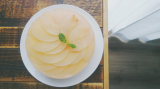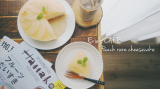 昨日作った桃のコンポートを使って、さっそく夏のお菓子作り♪クリームチーズにヨーグルトを加えて、さっぱりしたレアチーズケーキになった 2018/07/20